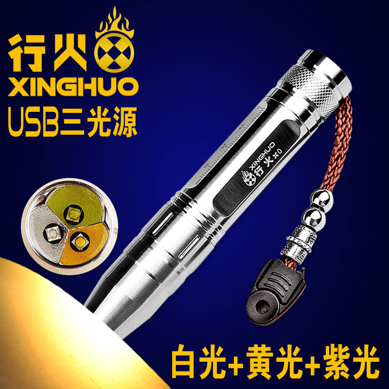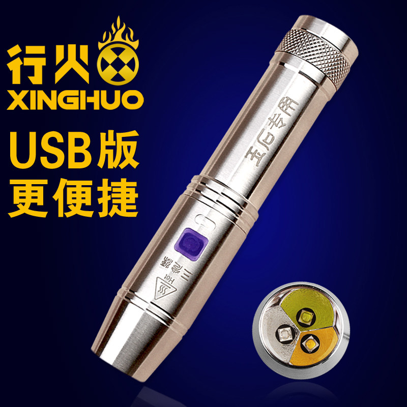 Three-light source for jade special strong light flashlight jade identification purple light banknote detection lamp fluorescent agent detection pen charging