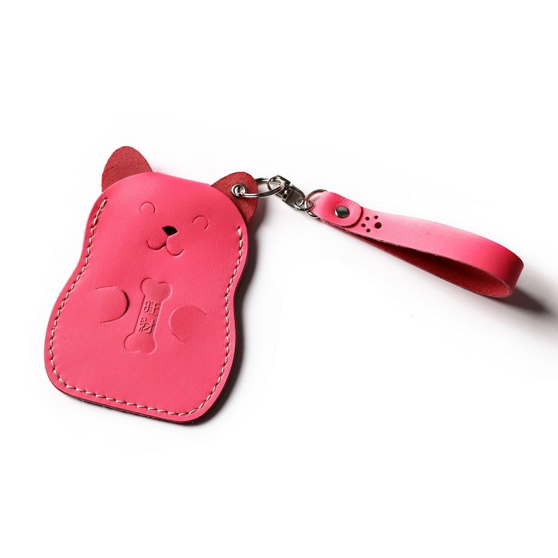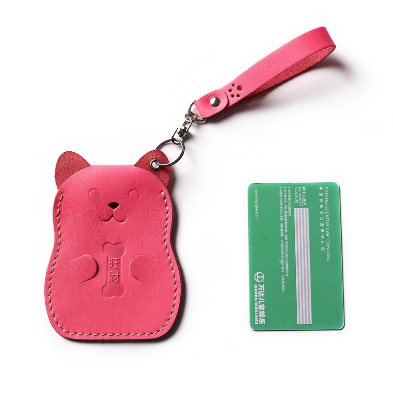Creative personality leather Yangchengtong bus subway card cover key chain student meal card pink cowhide campus card holder
