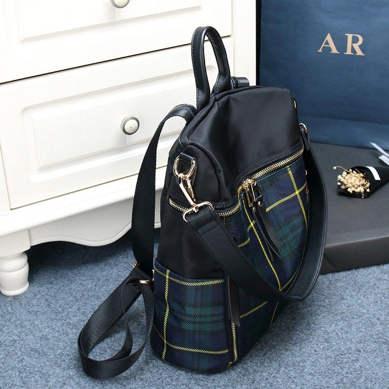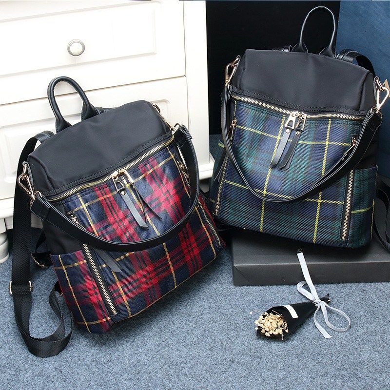 Tide brand 2021 new European and American fashion canvas plaid backpack women's casual women's bag Oxford cloth travel backpack
