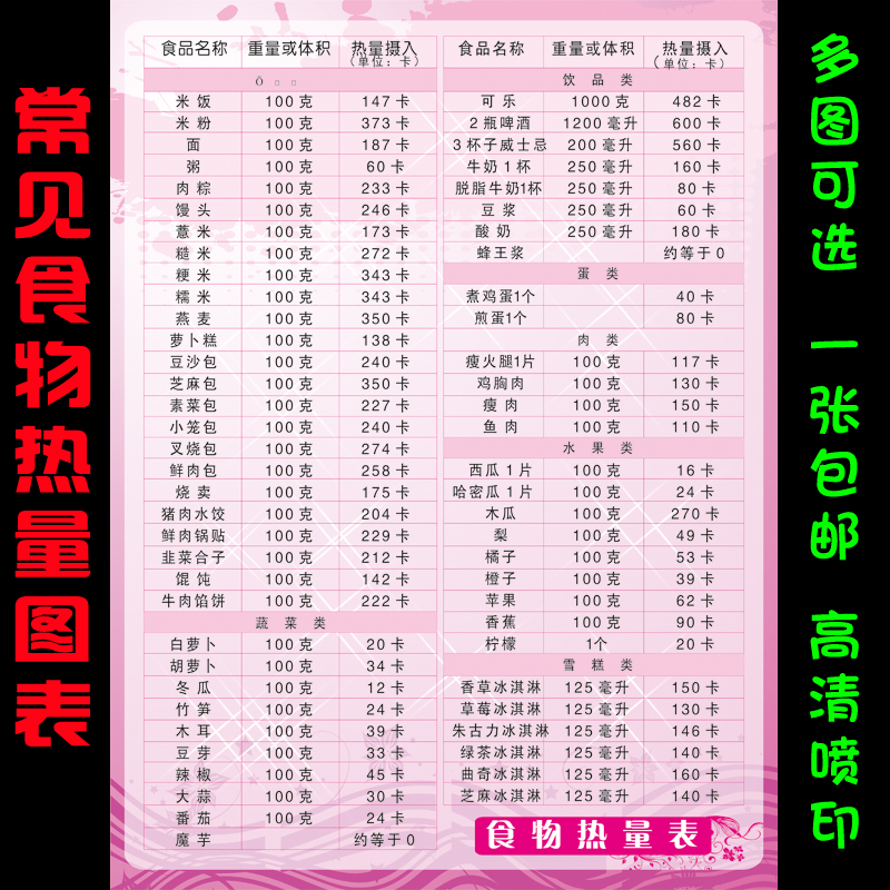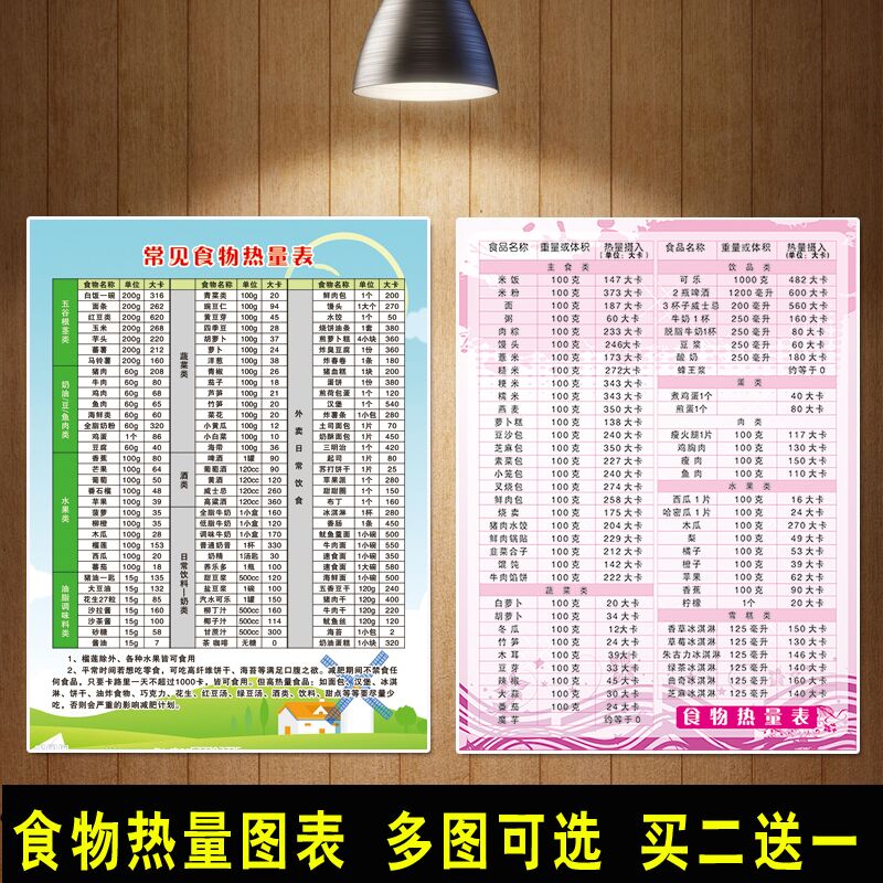 Common food calorie calorimeter posters posters Painting Fitness Room Health food Nutritional Ingredients and Energy Fig.