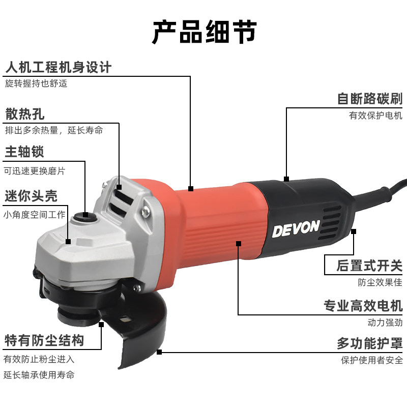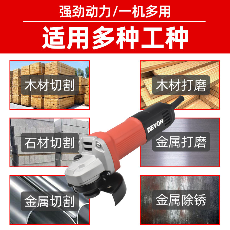DEVON large thin handle angle grinder multi-function cutting machine polishing machine steel grinding power tool 2835