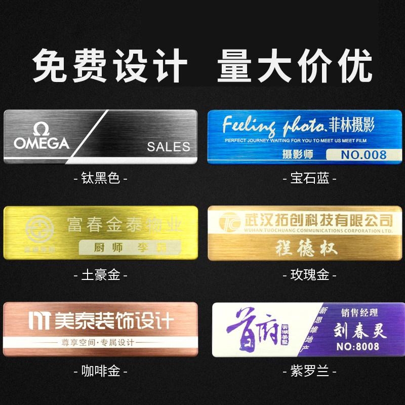 Chest plate customized stainless steel brushed plate custom employee number plate high-grade metal work plate magnet pin type