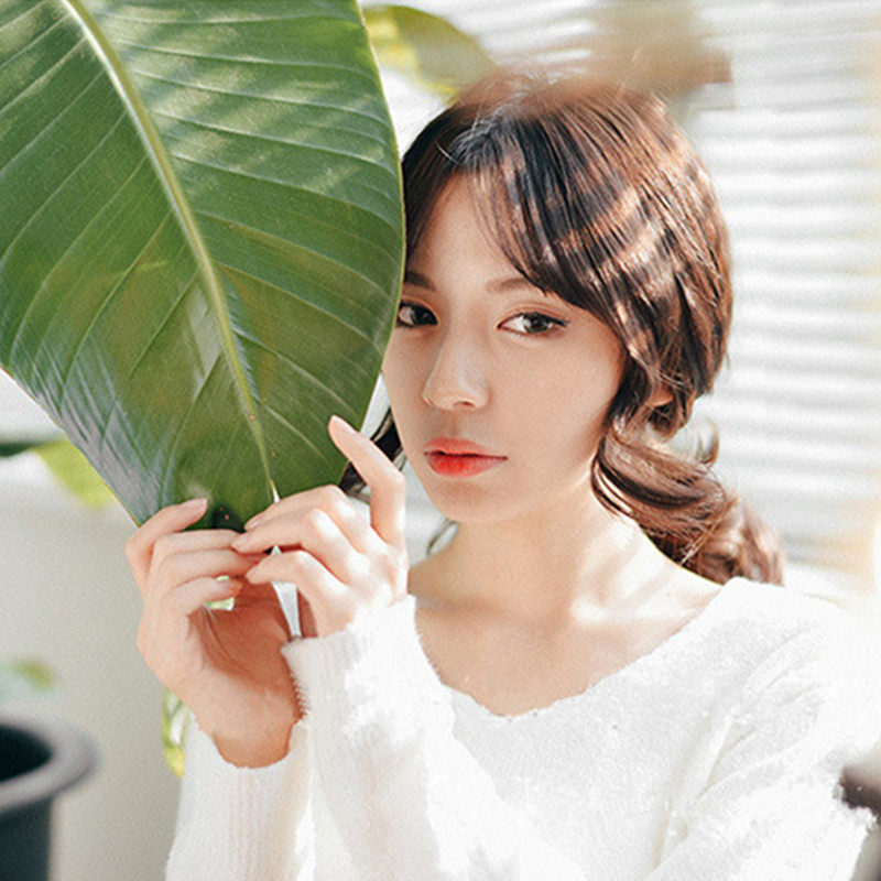 Korean-style oblique bangs in the middle of the face trimming face small in the air bangs eight-character bangs curly wig