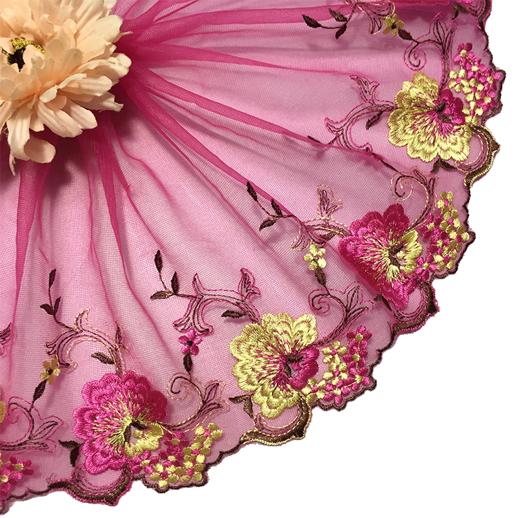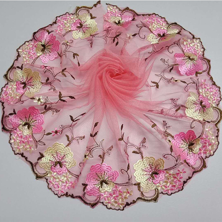 High quality pink fabric embroidery lace lace accessories clothing fabric handmade diy decorative material width 22cm