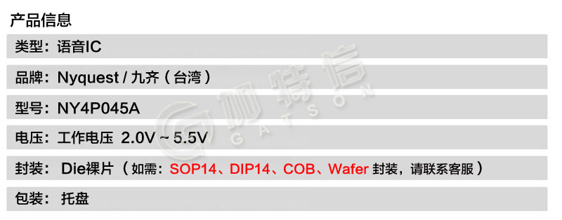 NY4P045A package DIE Nyquest Nine Qi first-class proxy voice IC OTP full series