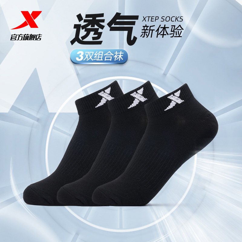 Xtebu short tube socks men's summer sports socks 3 pairs of cotton socks Breathable socks deodorant cotton socks Boat socks Short socks men's socks
