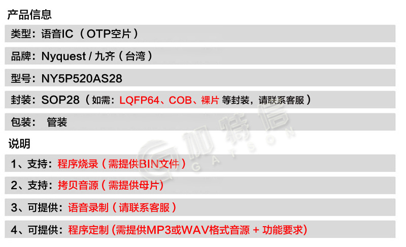 The new original Nyquest Nine-Qi Voice IC OTP full range NY5P520AS28 package SOP28