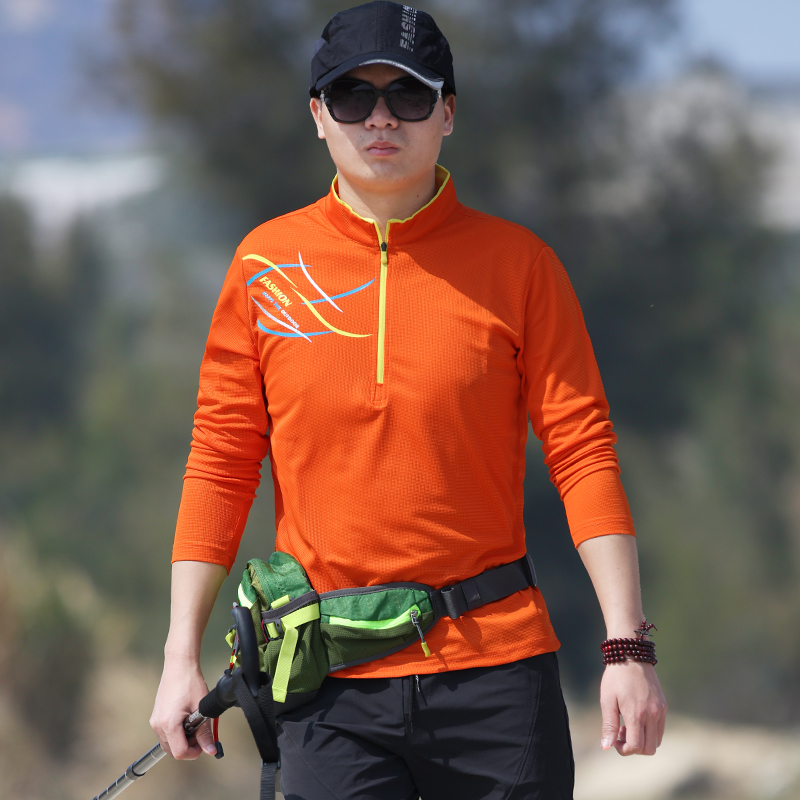 Outdoor speed dry clothes Men's long sleeves T-shirt Sweat Breathable Moisture Absorption Perspiration Sports Climbing Hiking Thin summer