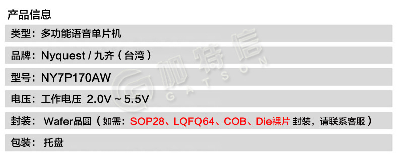 NY7P170AW Wafer wafer Nyquest Jiuzi original installed multifunction voice single wafer MCU