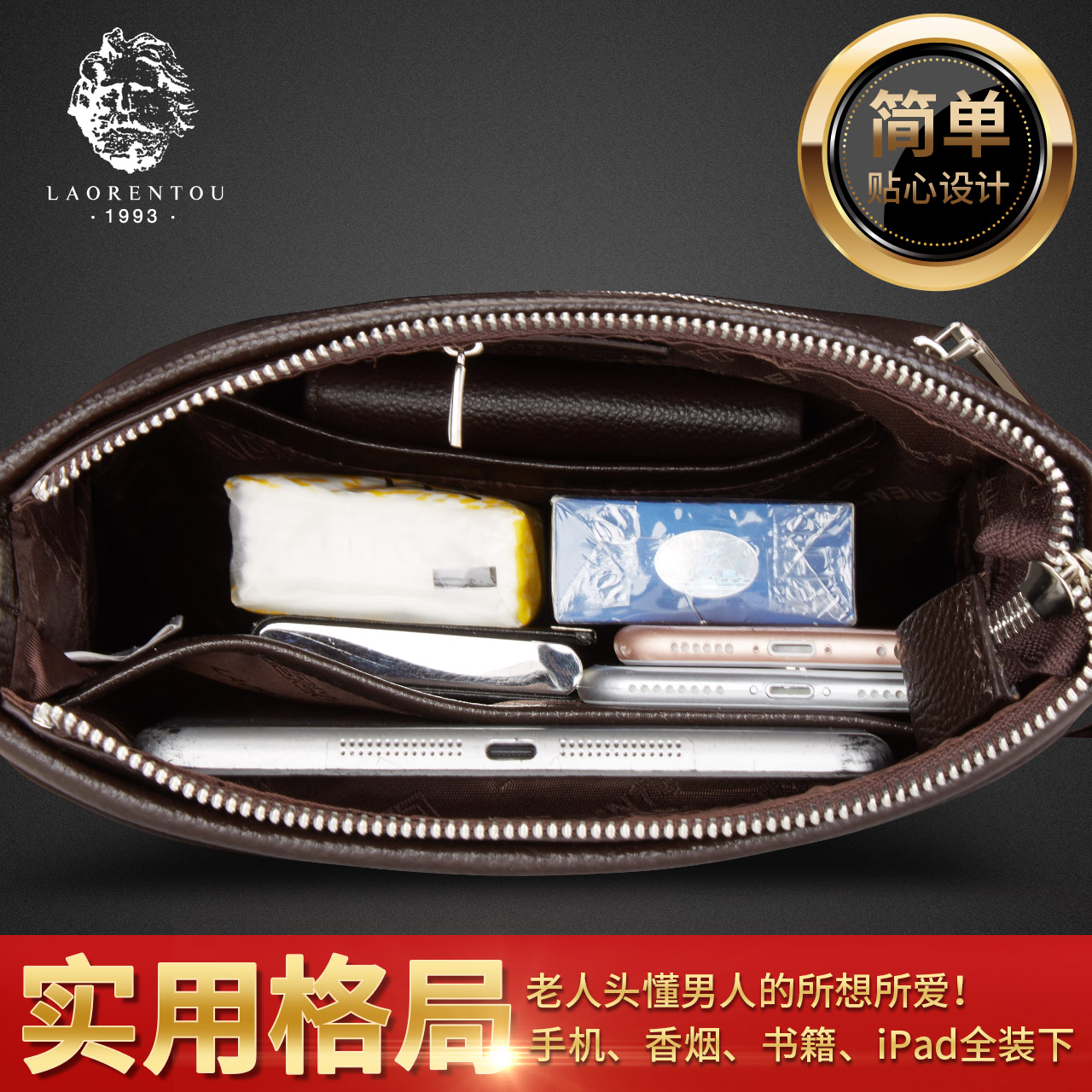 Old man's head leather men's bag Shoulder bag men's messenger bag Men's bag casual business backpack vertical cowhide bag