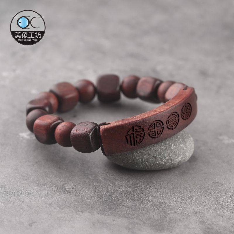 Original black sandalwood couple bracelet pair of wooden bracelet bracelet lettering custom vintage personality jewelry