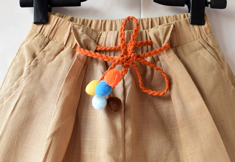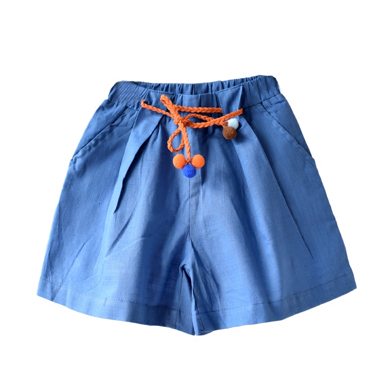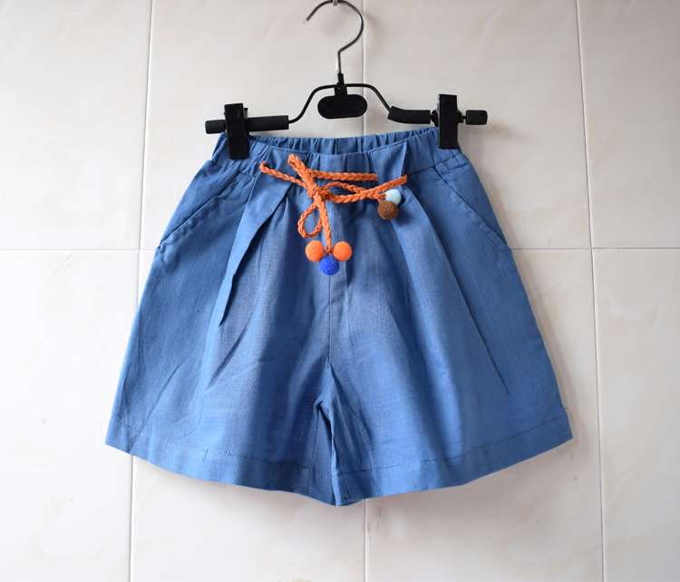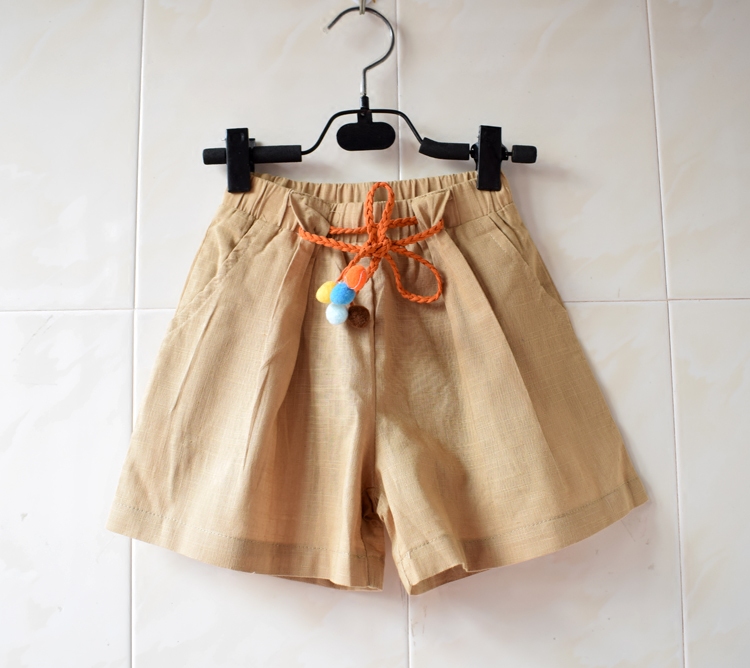 2-7 years old foreign trade children's clothing girls cotton and linen wide-leg pants casual pants all-match belt shorts beach pants hot pants summer