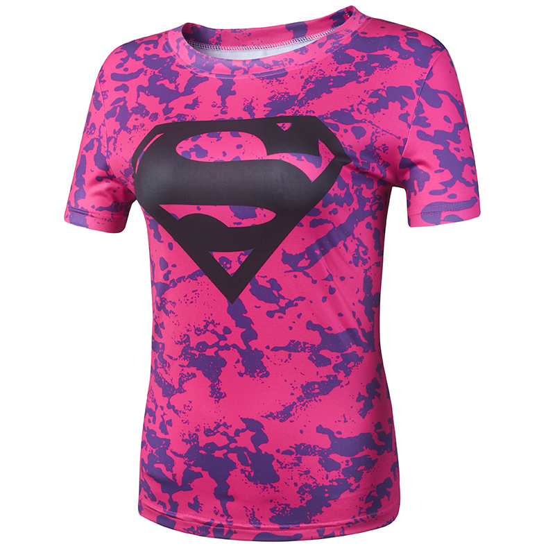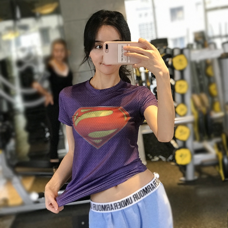 Superman fitness clothing female Captain America tight sports short-sleeved running quick-drying half-sleeve breathable high elastic top to wear outside