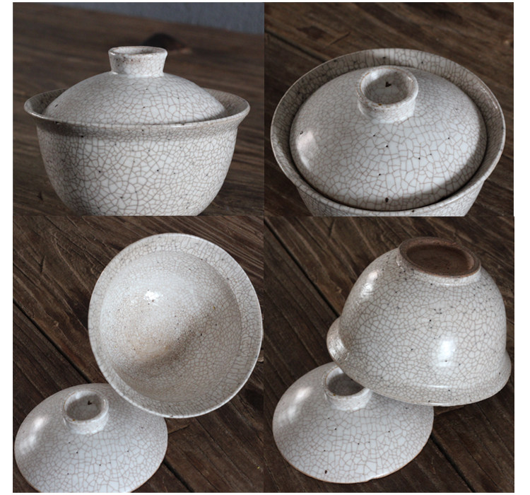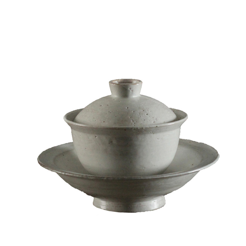 Jingdezhen pure handmade ceramic retro-style powder led to three only coarse pottery cover bowl tea cup open sheet to raise Kung Fu tea set