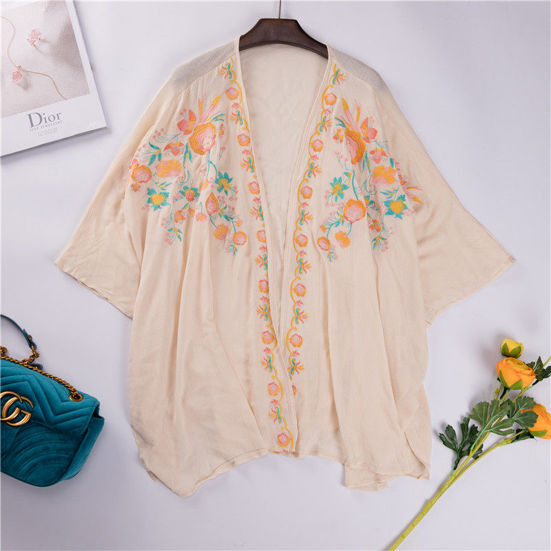 Ethnic style embroidered cardigan Swimsuit blouse Sunscreen suit Seaside vacation loose outer shawl Beach coat top