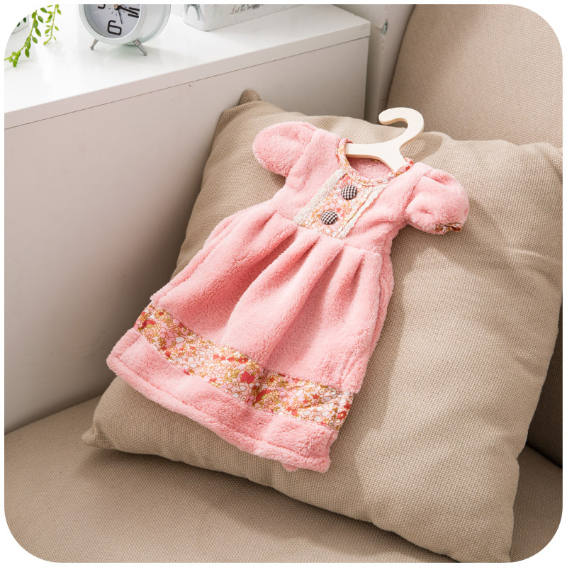 Korean version ex-gratia short Lovely dress with thickened Thickened Coral Fleece hand towel Absorbent Hanging Kitchen Towel for Home