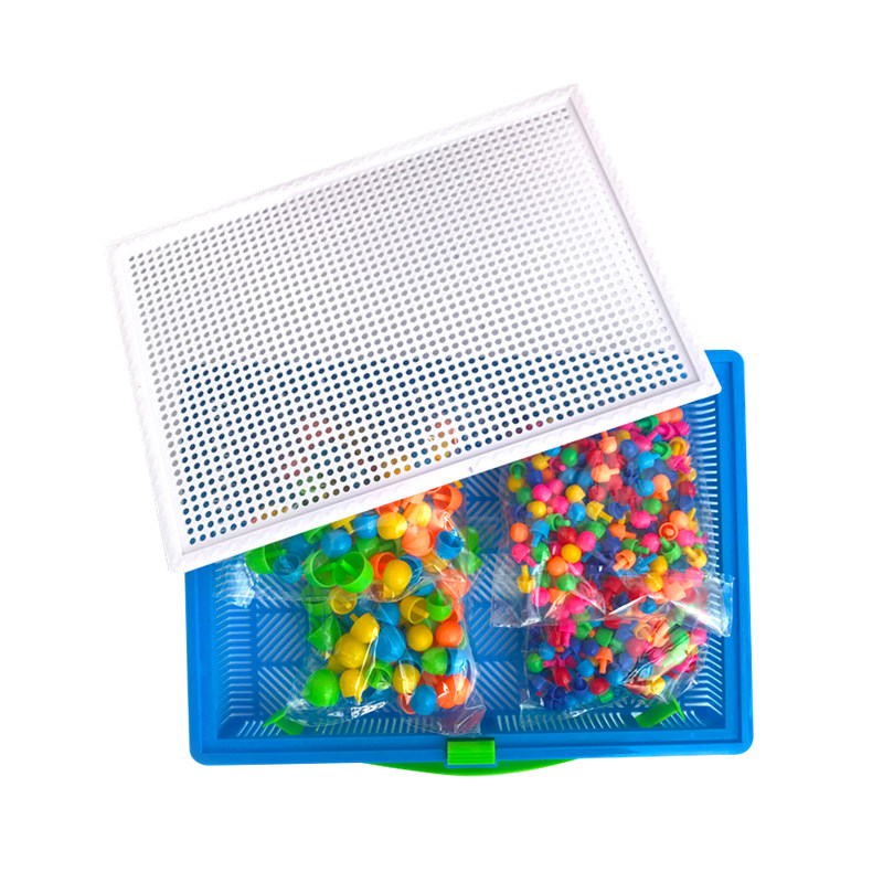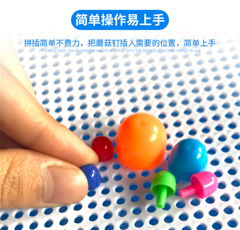 Children's Mushroom Nail Science and Education Toy Baby Early Education Puzzle Boxed Plastic Plug-in Board Puzzle Creativity
