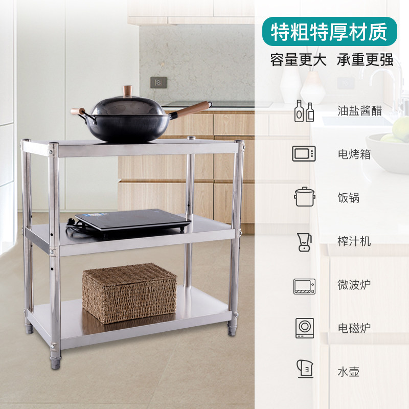 Household stainless steel rack three-story kitchen storage rack microwave oven oven rack pot rack pot rack shelf