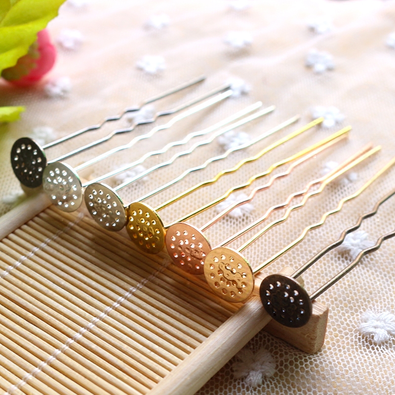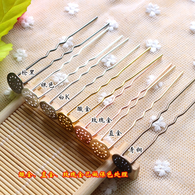 Copper plated 12mm mesh plane 75MMU-shaped hairpin hairpin handmade DIY ancient style headdress walking accessories