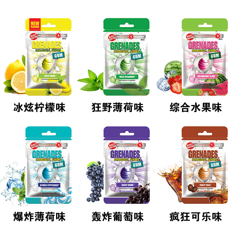 Mixed Fruit flavor (Level 9) Bomb Grape (Level 9)Ice Xuan Lemon(Level 8) Crazy Cola (Level 7)Explosion Mint (Level 8) Super mint (Level 10) Assorted Fruit Level 10(15