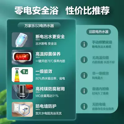 Wanjiale S3 electric water heater electric household 60 liter dressing room water storage type small 50L bath quick heat energy saving 80L