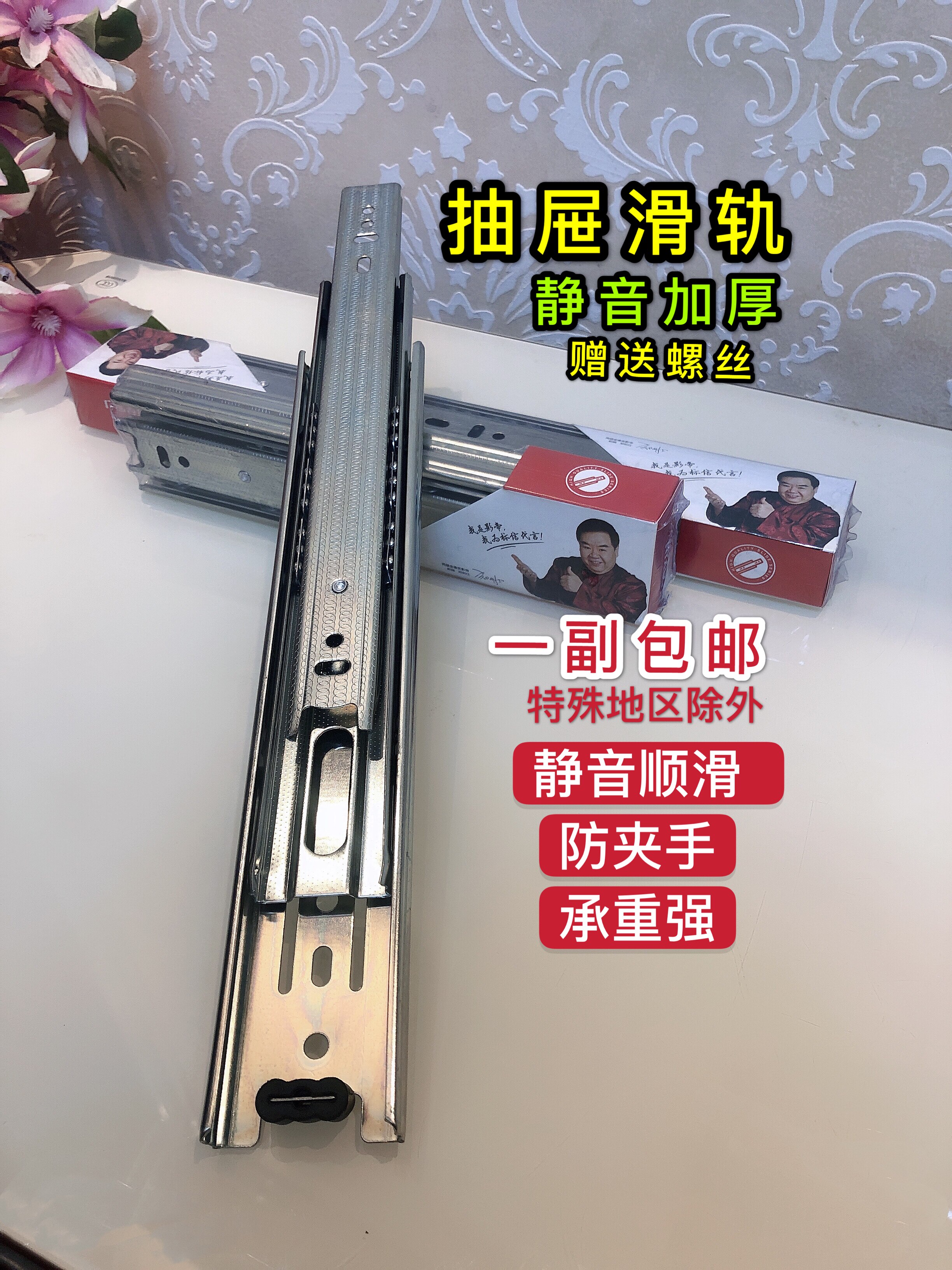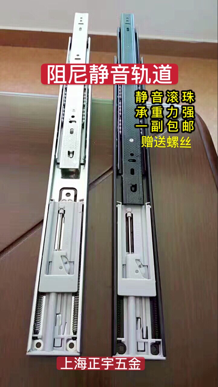 One Lawang mute drawer track three-section buffer damping slide rail guide rail slide rail 3-section rail