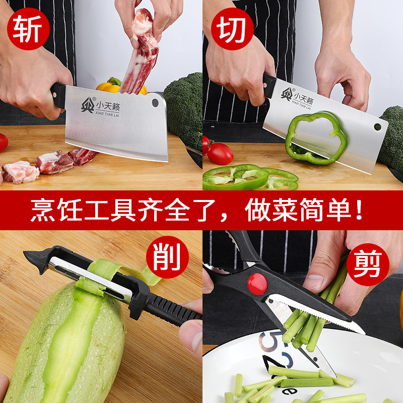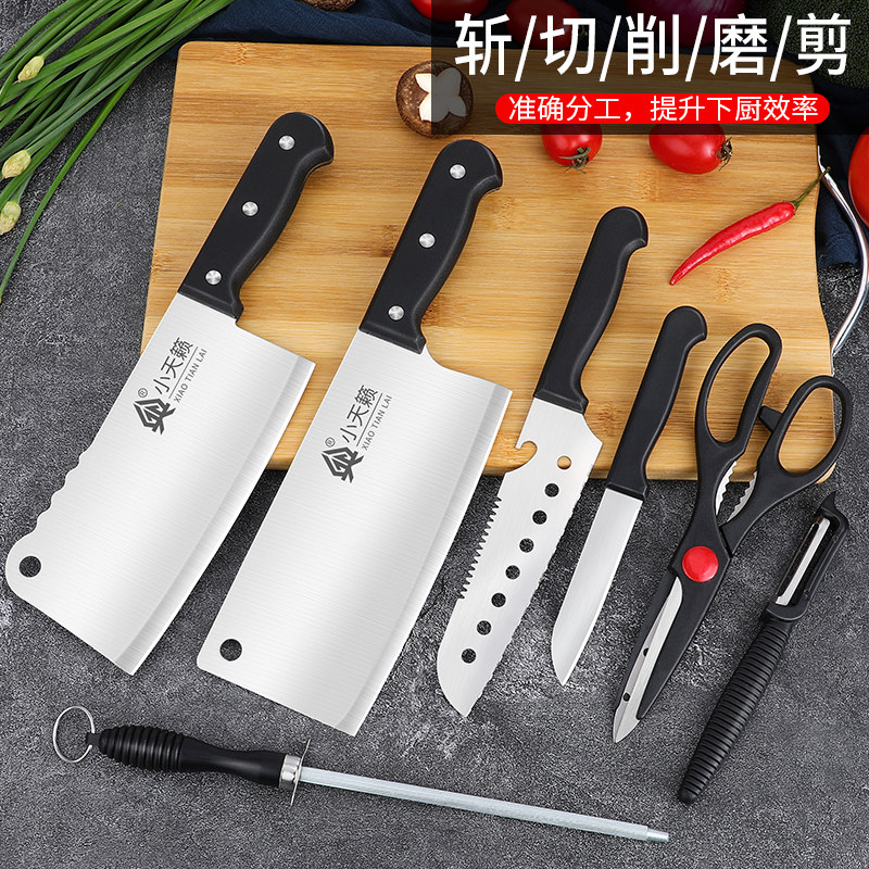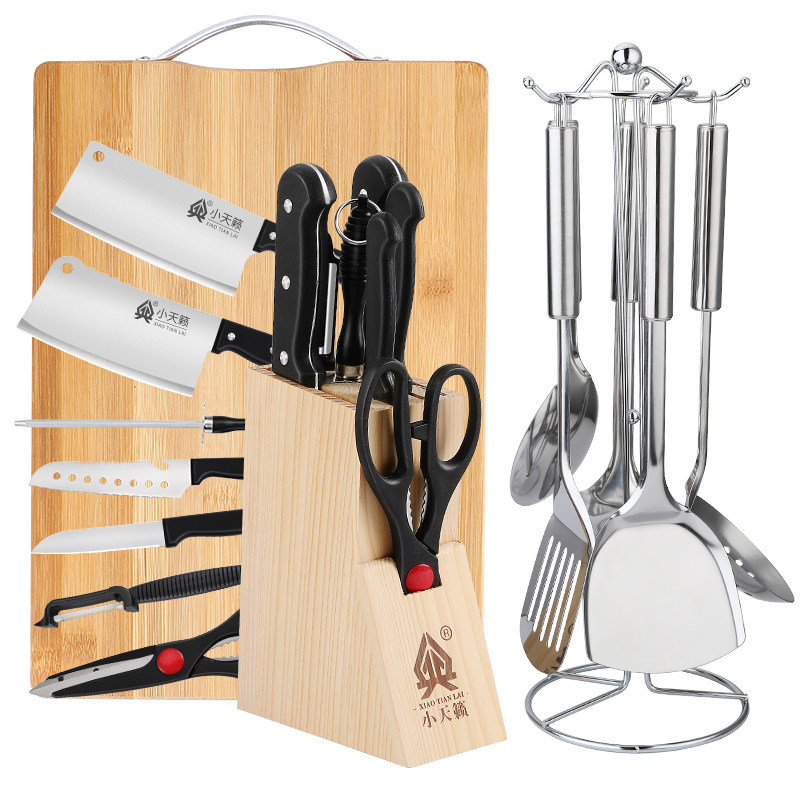Kitchen kitchen knife household set combination chef special slicing knife chopping knife cutting board solid wood knife seat full set of shovel spoon