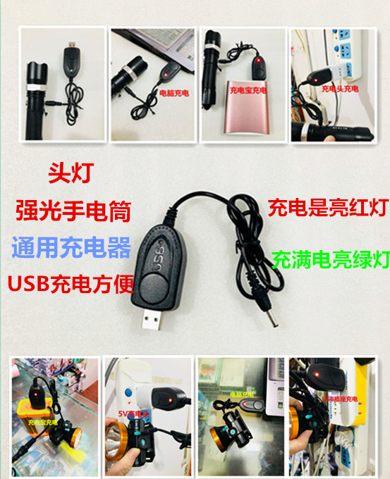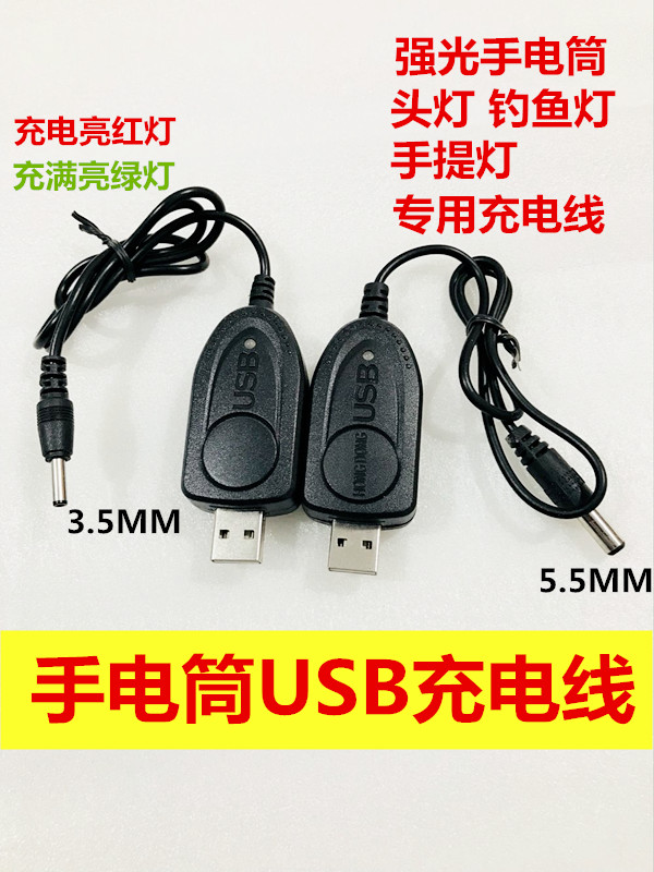 Strong light flashlight 3 5mm charging cable 5V to 4 2V direct charge adapter lamp power cord car USB charger