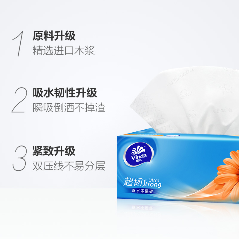 Vinda removable tissue paper household affordable full box family pack 20 packs of baby napkins facial tissue removable toilet paper