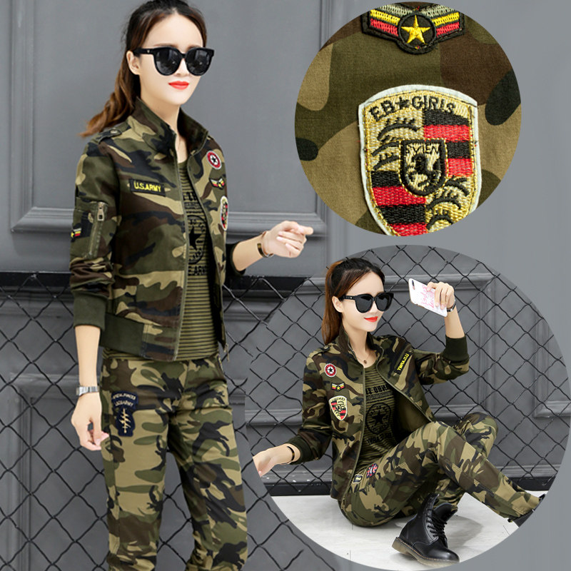 Camouflage uniform three-piece suit female spring and autumn 2019 new outdoor leisure combat training clothing military uniform sailor dance performance clothing