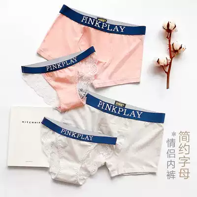 Couple underwear black cotton set couples lace men's flat corner women's low waist size student pants pink transparent