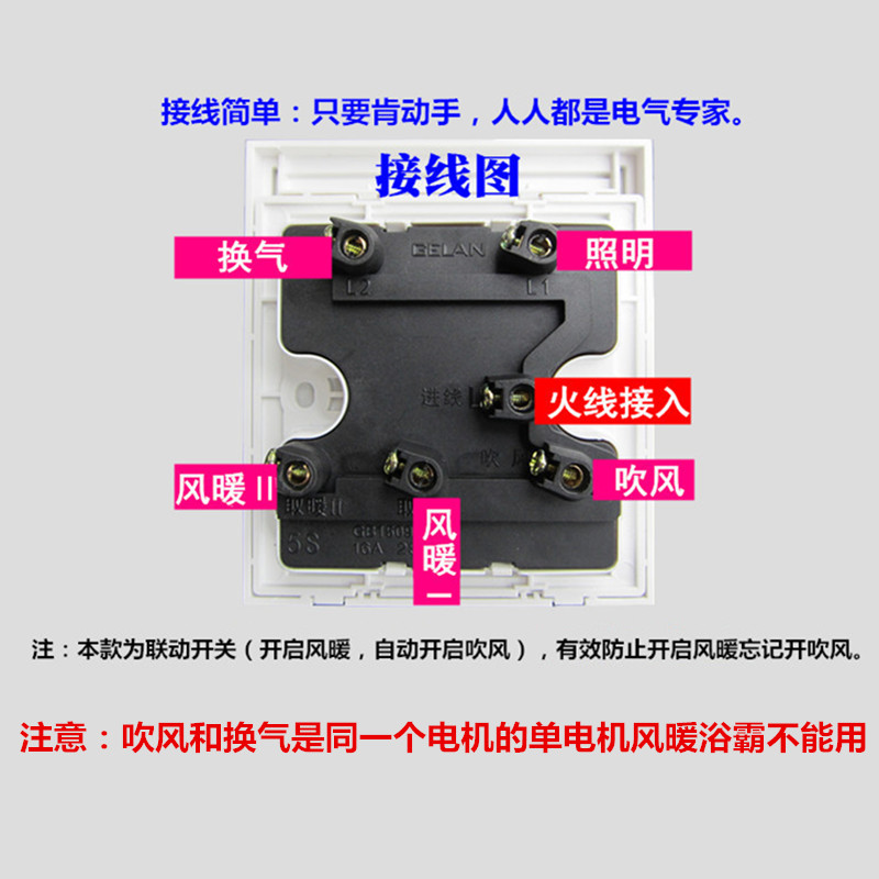 Integrated Ceiling Bath Bulwara Special Switch Bathroom Waterproof 86 Type Five Five Open Wind Warm 16A Linkage Type 5 Lianz Switch-Taobao
