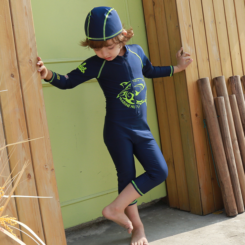 Children's swimsuit for boys, middle and large children, long-sleeved sun protection one-piece swimsuit for baby boy, hot spring wetsuit, jellyfish suit