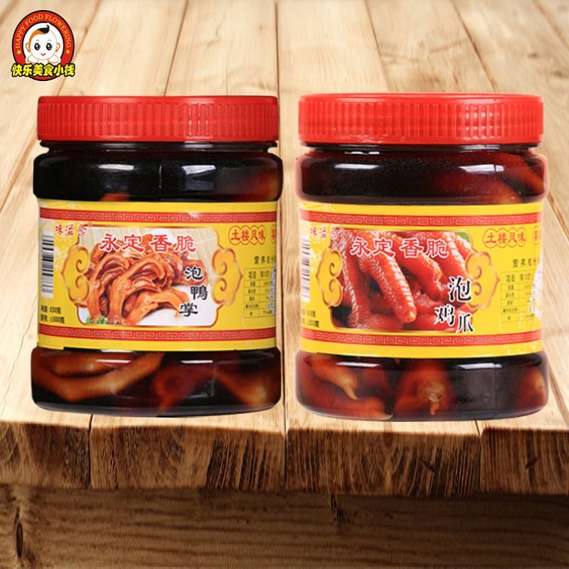 Longyan canned soaked duck feet authentic Fujian specialty Tulou crispy soaked duck feet bottled duck feet snacks