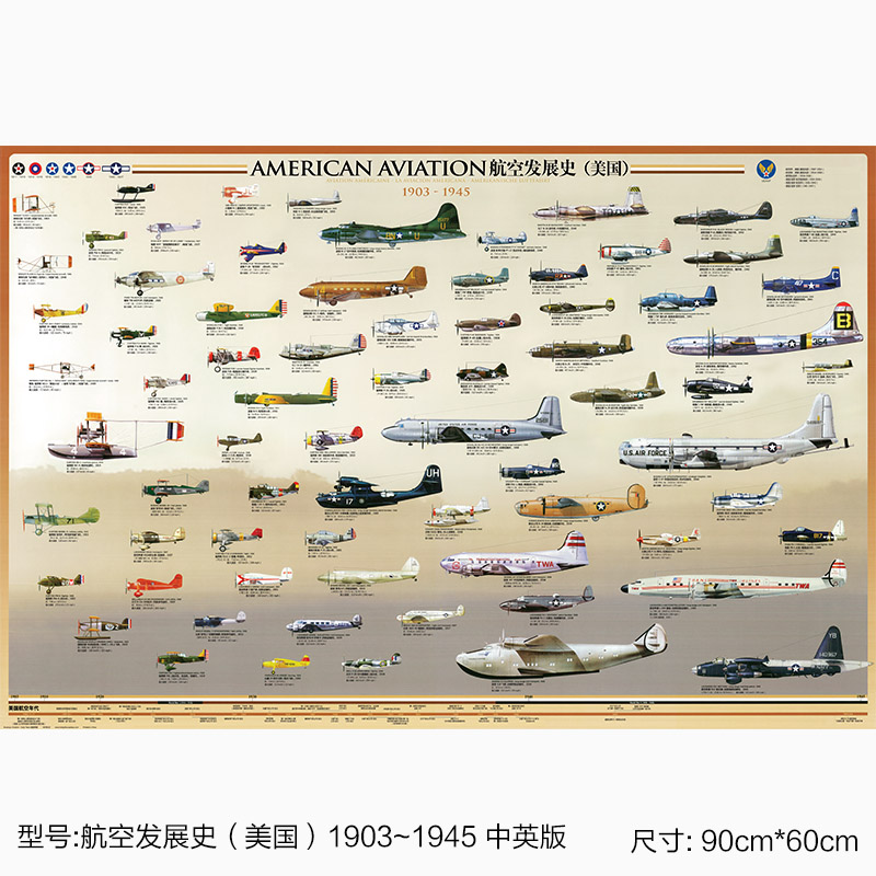 History of Aviation Development (1783-2012) Sino-British Edition Development History (USA) 1903 ~ 1945 Sino-British Edition Light Aircraft Teaching Poster-China-UK Edition Development History (US) 19