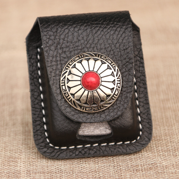 zippo lighter holster leather cowhide kerosene lighter cover Suluo lighter treasure accessories snap button hollow