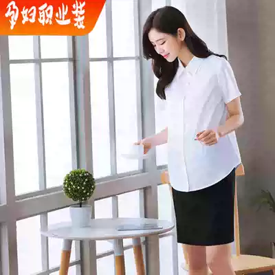 Pregnant women's shirt short-sleeved white short professional overalls new summer blue OL tooling half-sleeved interview shirt
