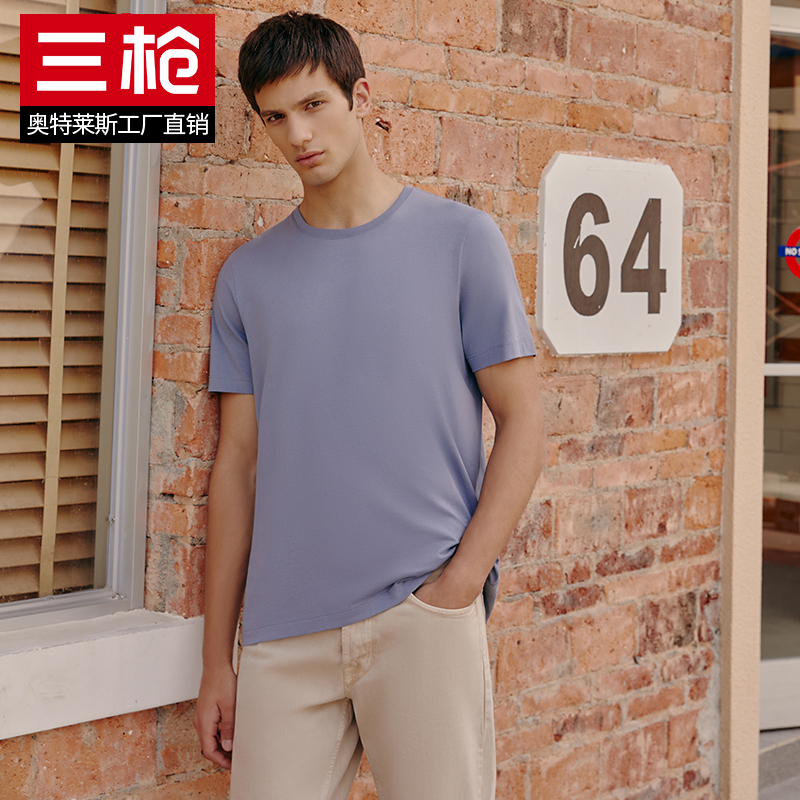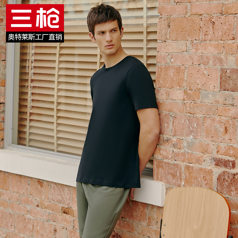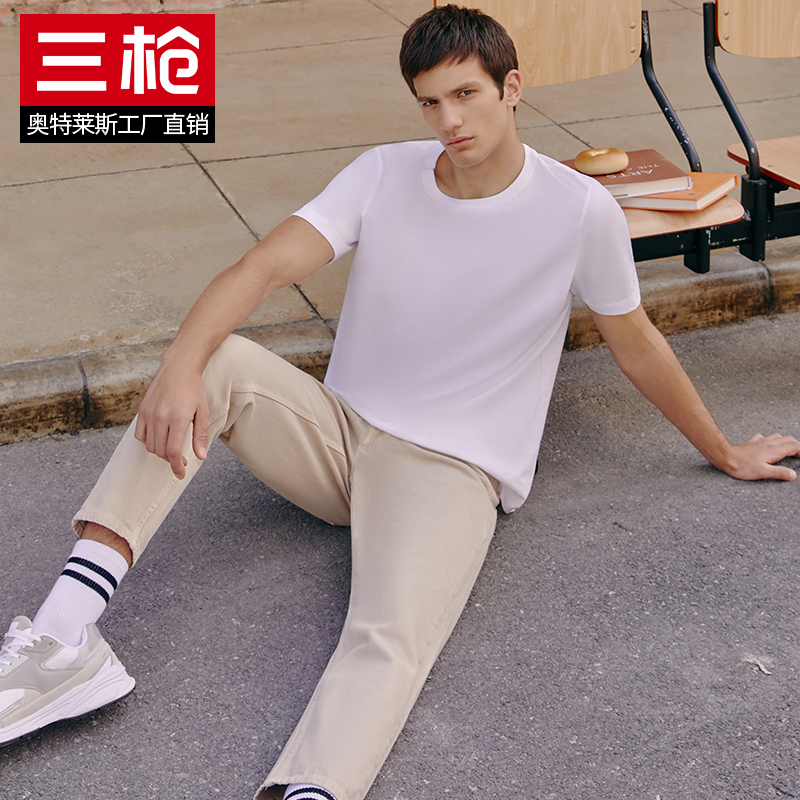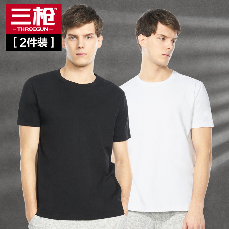 2 pieces of clothing ] Three - gun T - shirt men spring and summer water soft cotton pure coloured collar short - sleeve base blouse tops