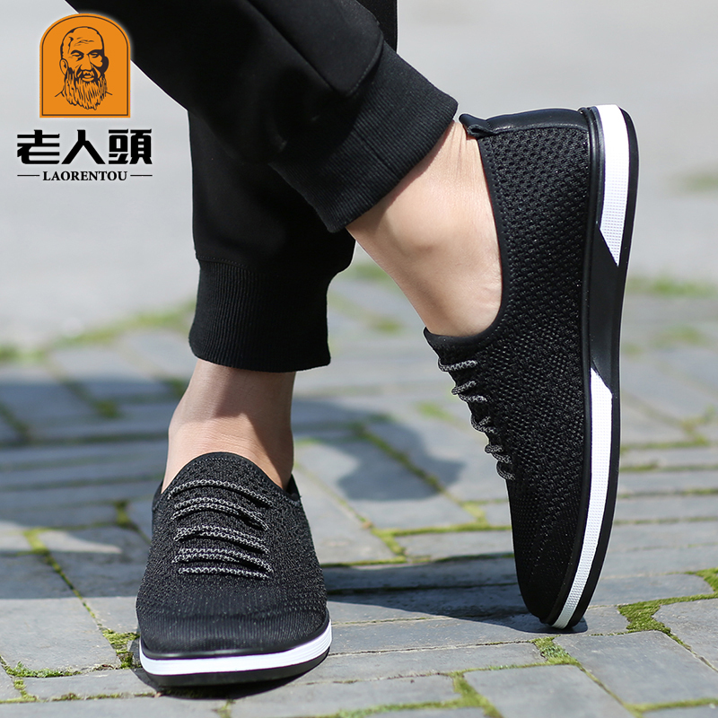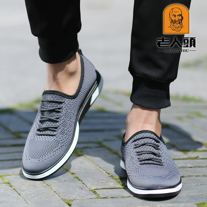 Old man's head men's tennis shoes 2022 Summer new breathable men's sports casual tennis face shoes Deodorant Flying web cloth shoes