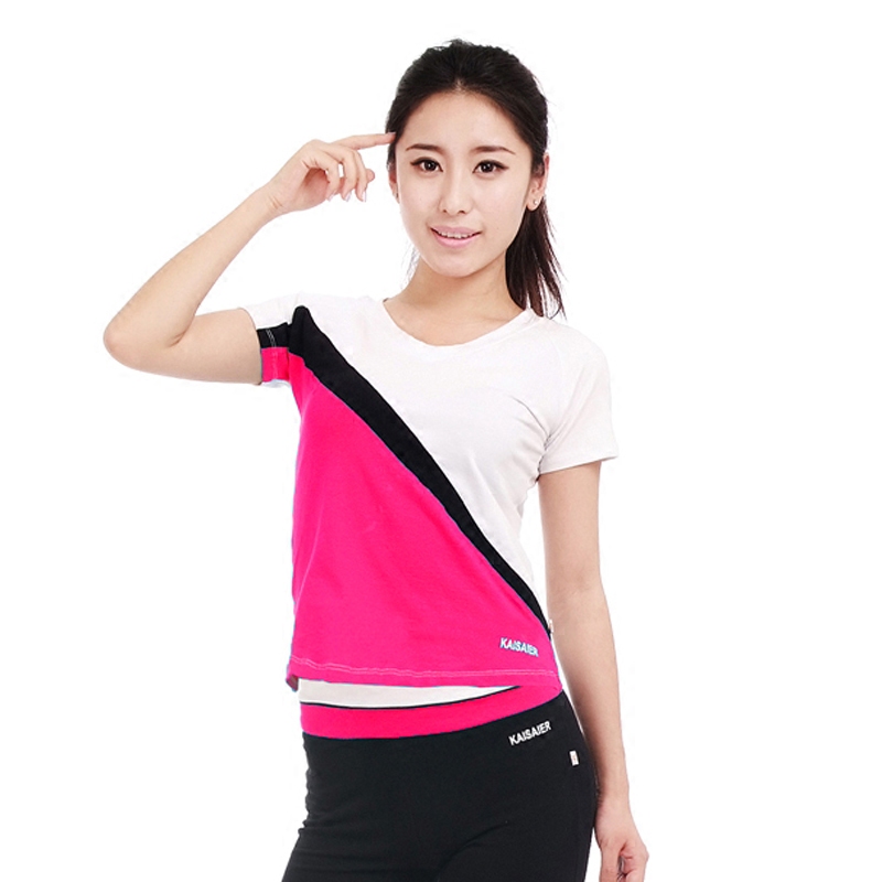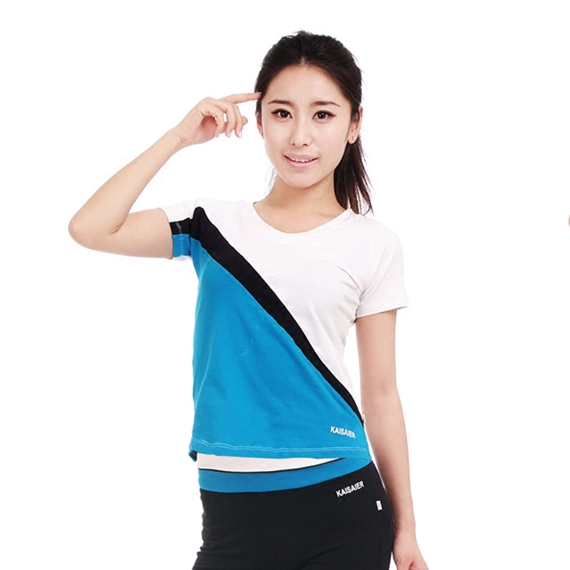 Summer women's sports fitness short-sleeved top cotton new round neck square dance performance clothing aerobics top sale