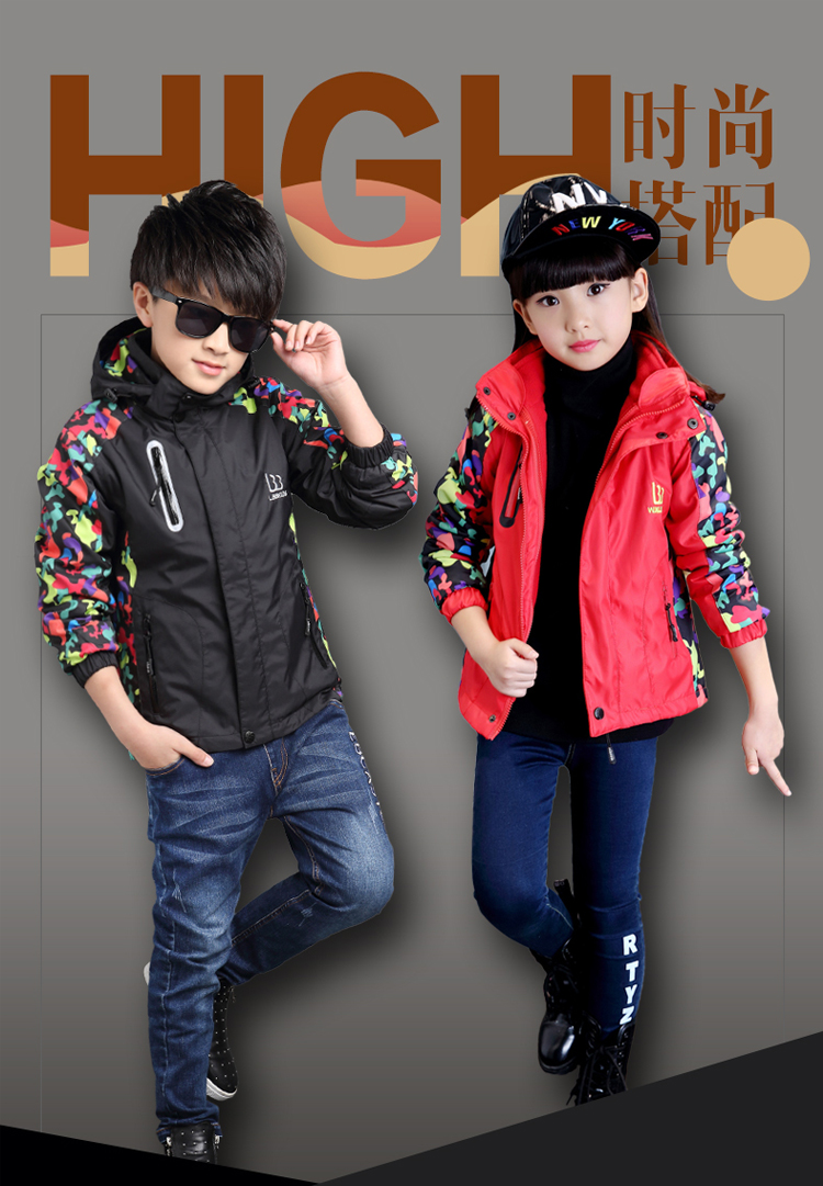 Outdoor children's jackets boys and girls jacket three-in-one plus velvet thick inner bile two-piece set for big children in winter