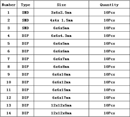 140pcs 14 instant touch button switch miniature SMD patch light switch