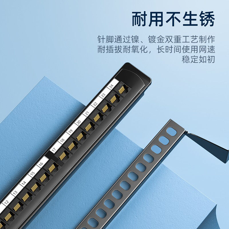 Shanze super five categories 24-port free hit distribution frame engineering grade free hit dual-pass network gold-plated 1U rack-mounted WAN-17