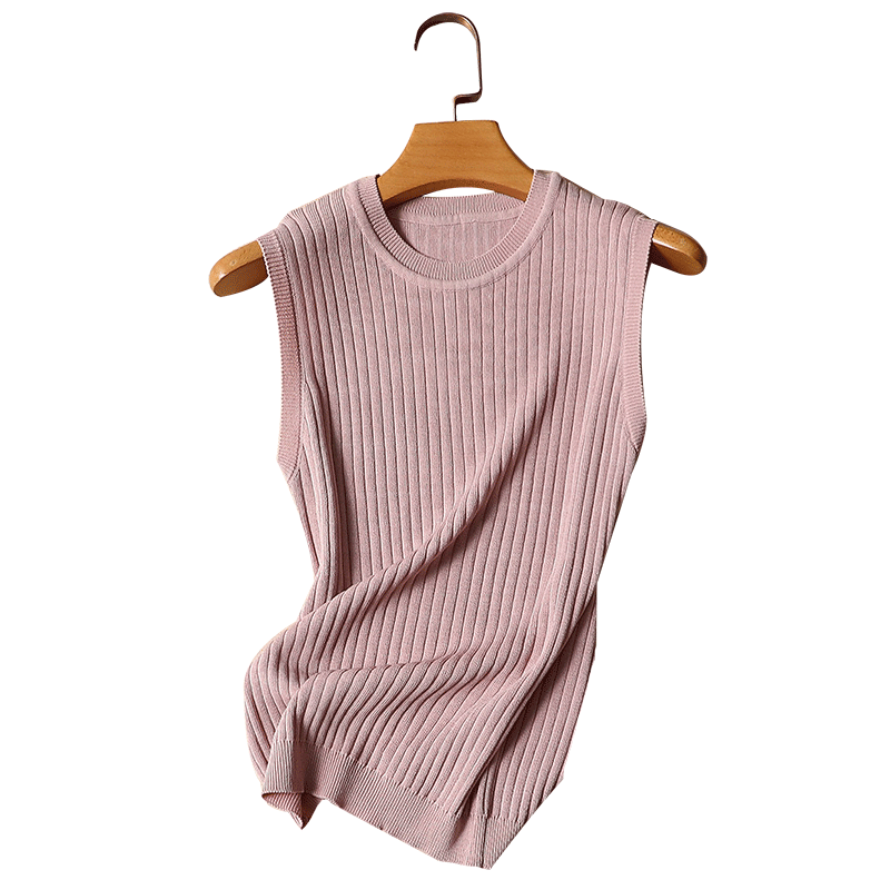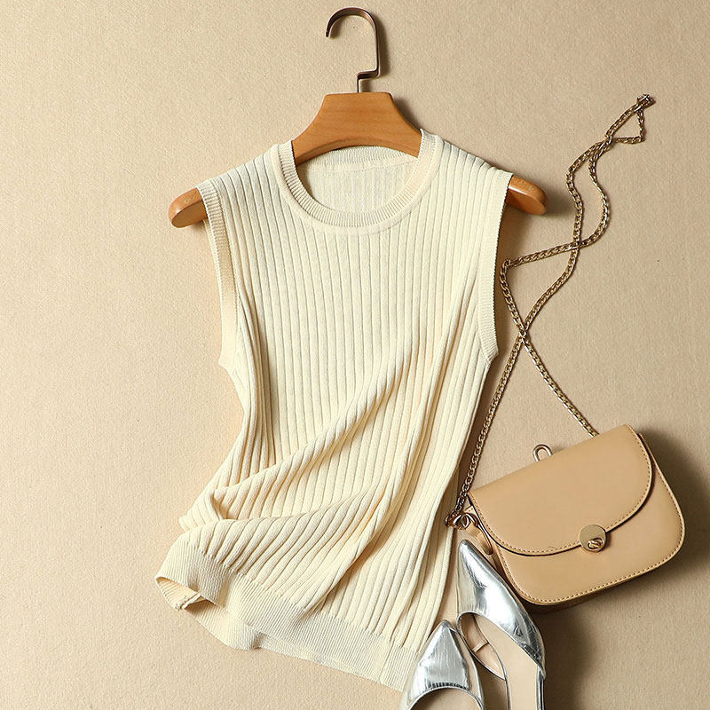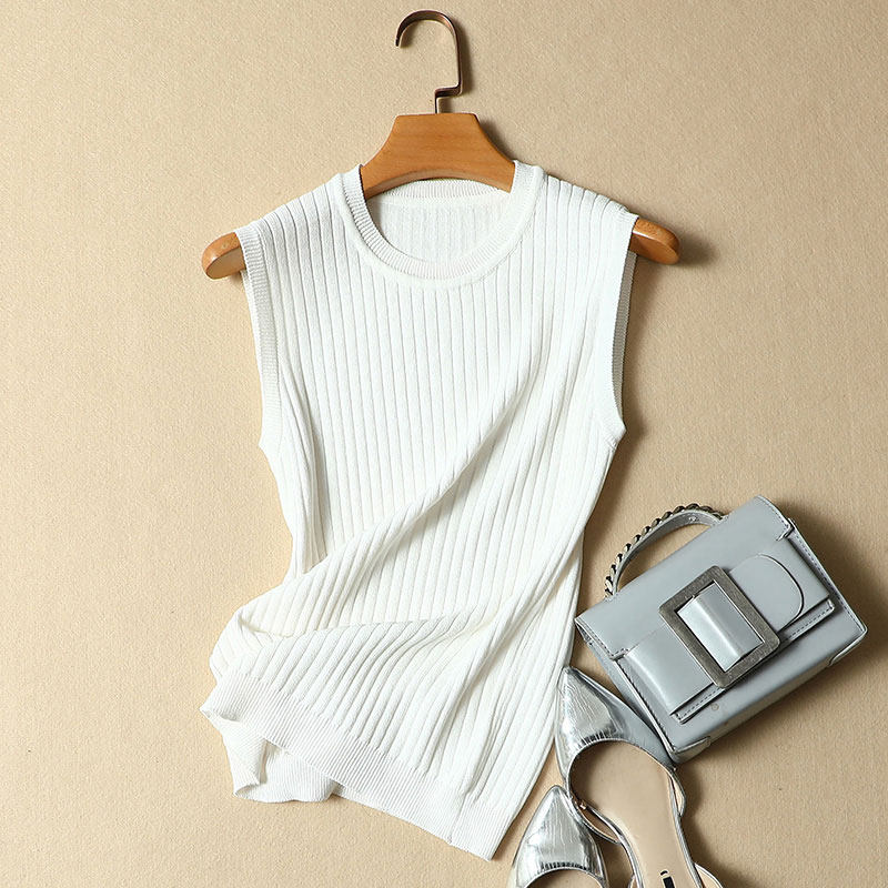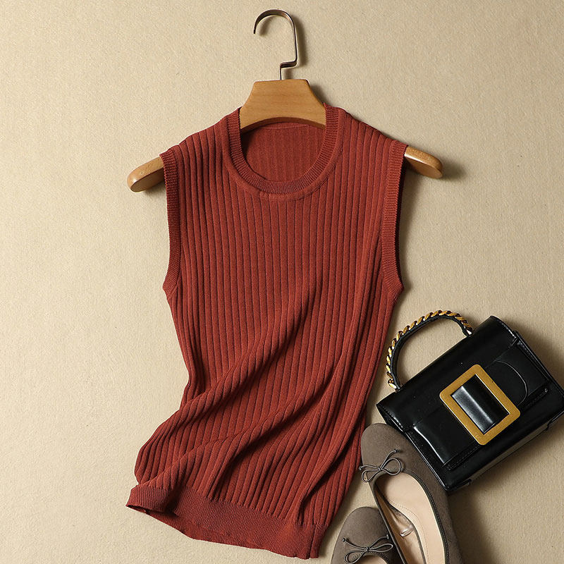 Ice wire knitted shirt hanging vest coat female summer short round collar with sleeveless T-shirt short sleeve coat