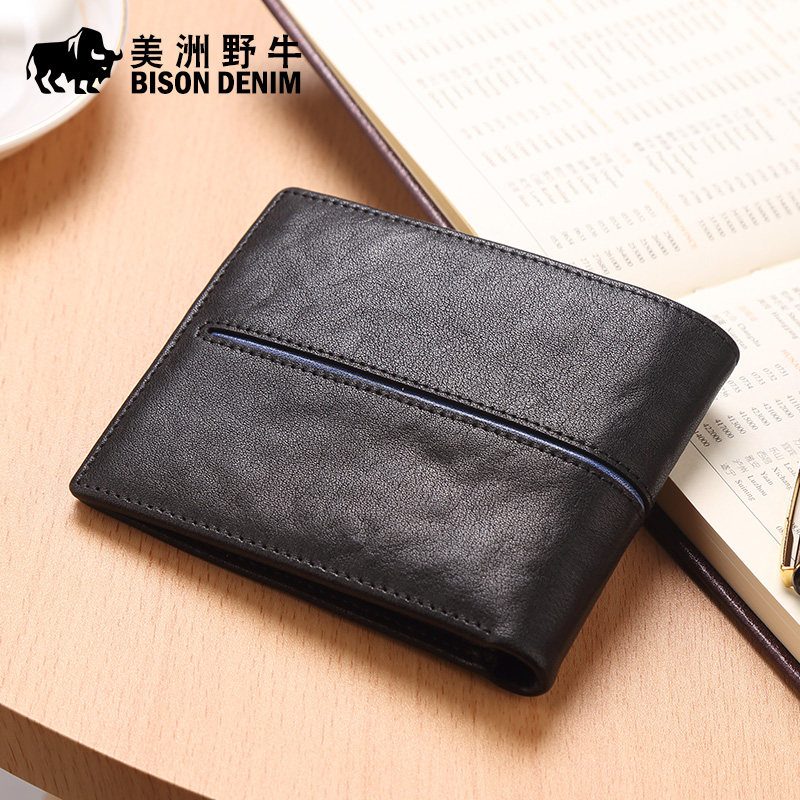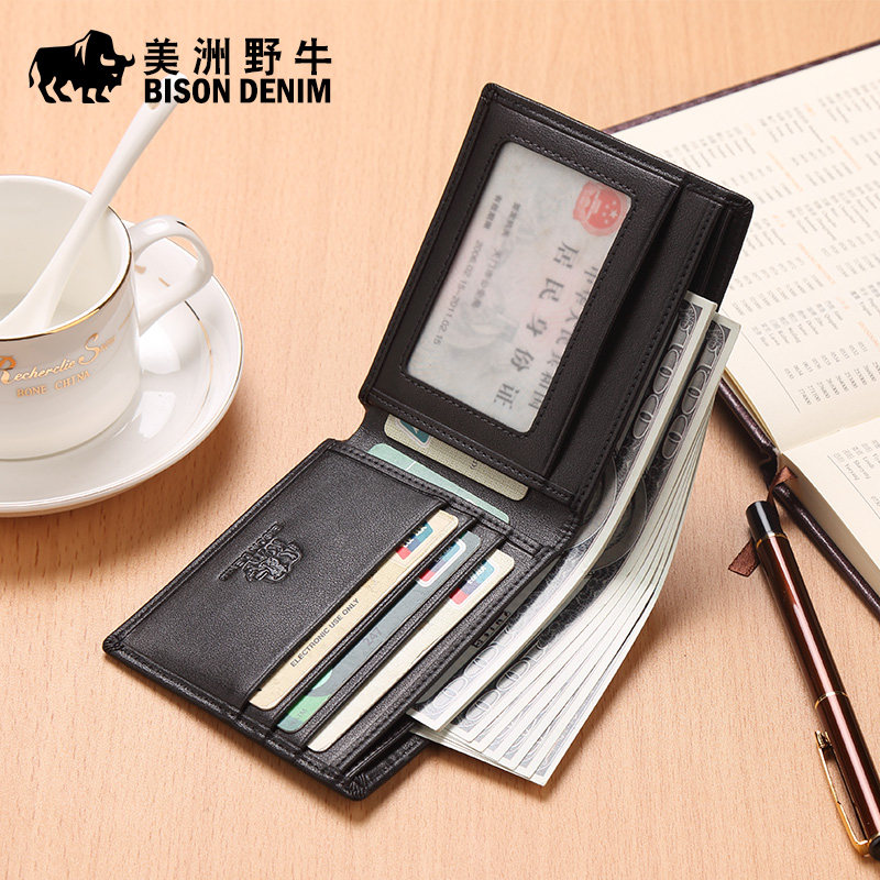 Americas Bison Bull Wallet Man Short REAL LEATHER LARGE CAPACITY MULTI-BLOCKING MONEY CLIP 2022 NEW TIDE YOUTH CROSSWALK LEATHER WALLET