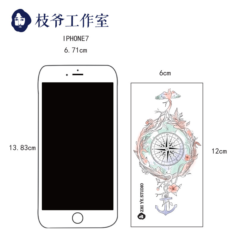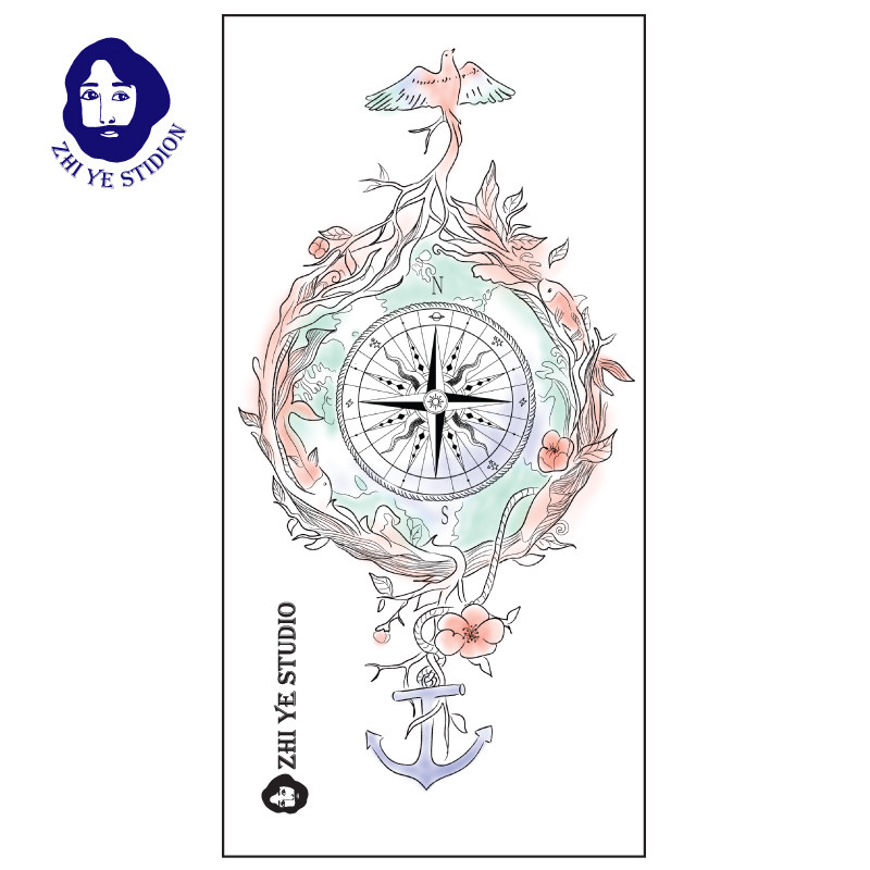 Branches Master's Department Juveniles Literature tattooed with hand-painted watercolor compass flying bird compass and male and female flower arms waterproof