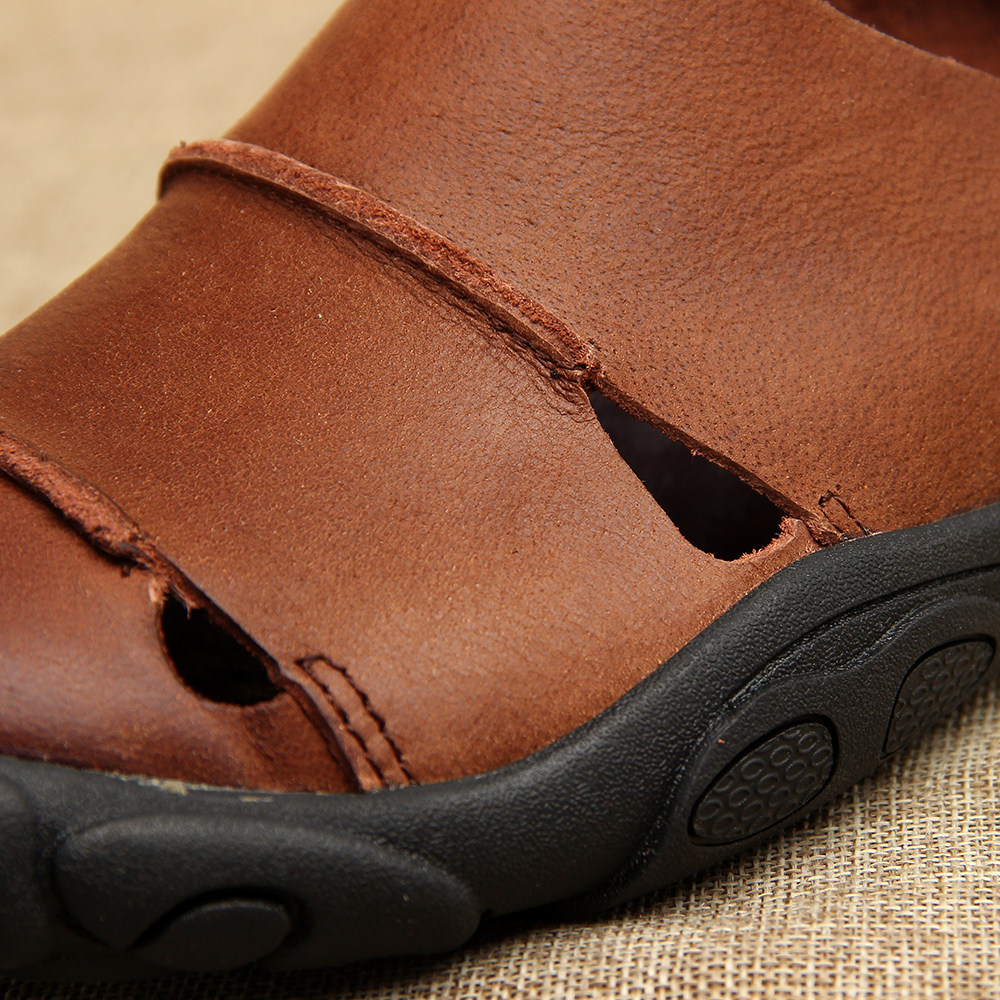 2022 New headskin men's shoes lazy casual cave real leather bag sandals beach male foreign trade shoes