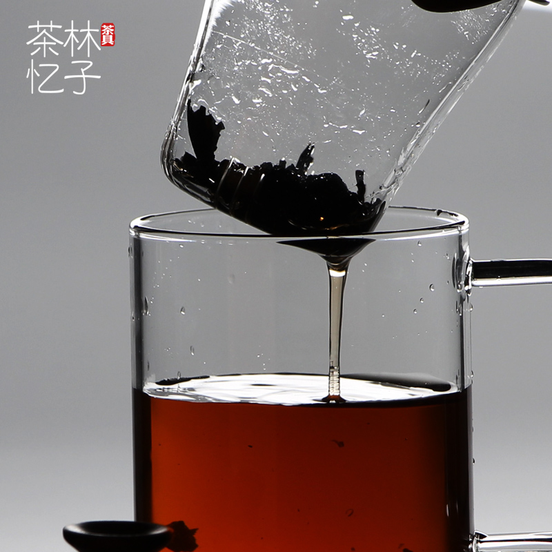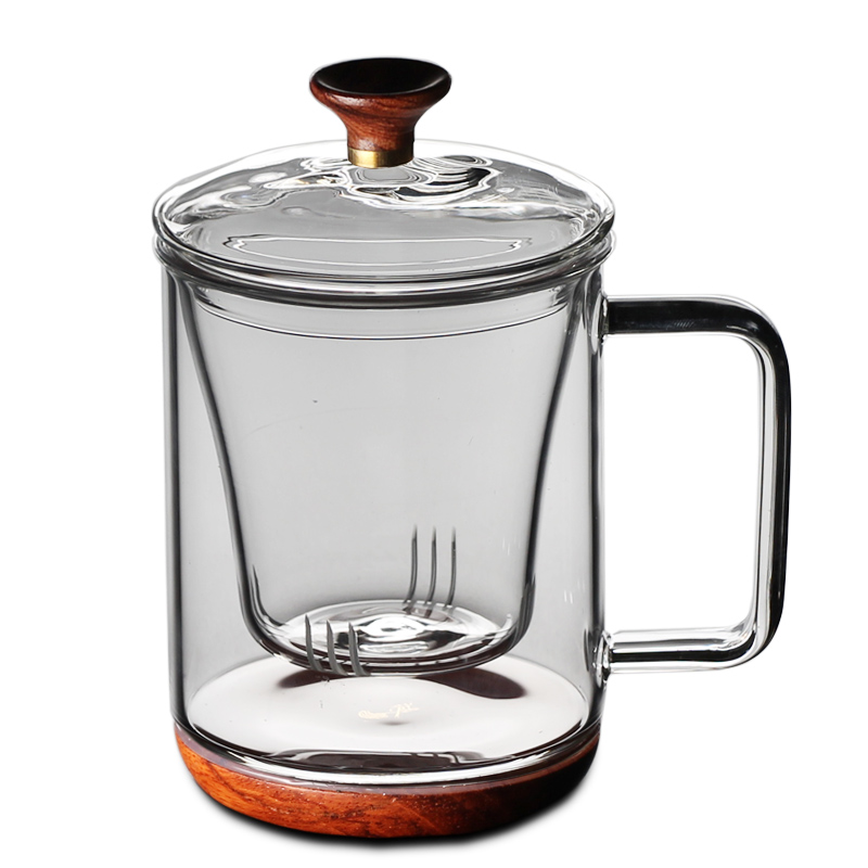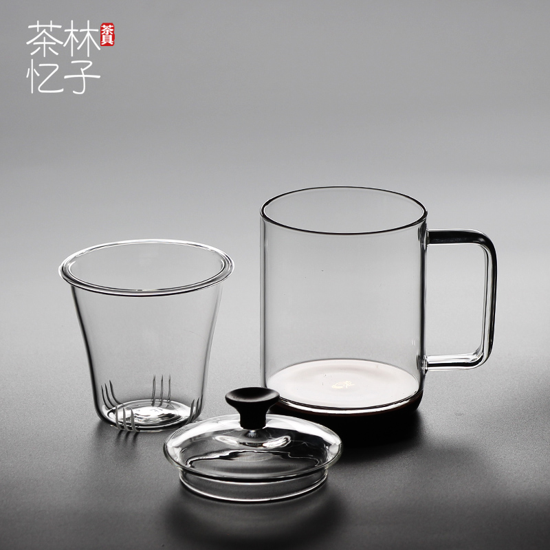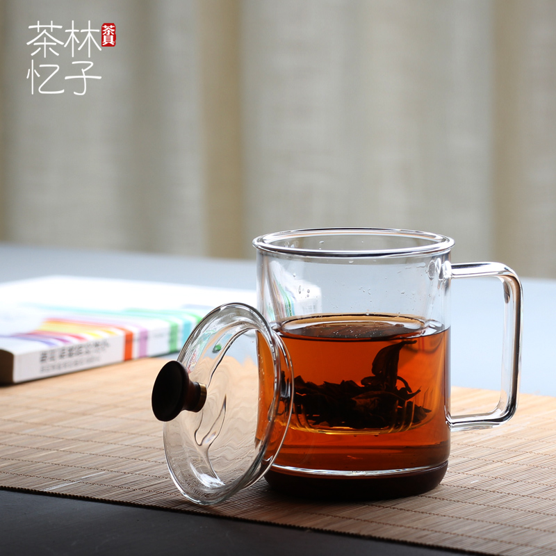 Linzi tea memory thickened heat-resistant glass three-piece set of cups Wood-based office filter tea cup with lid Straight water cup