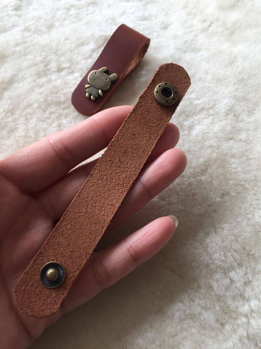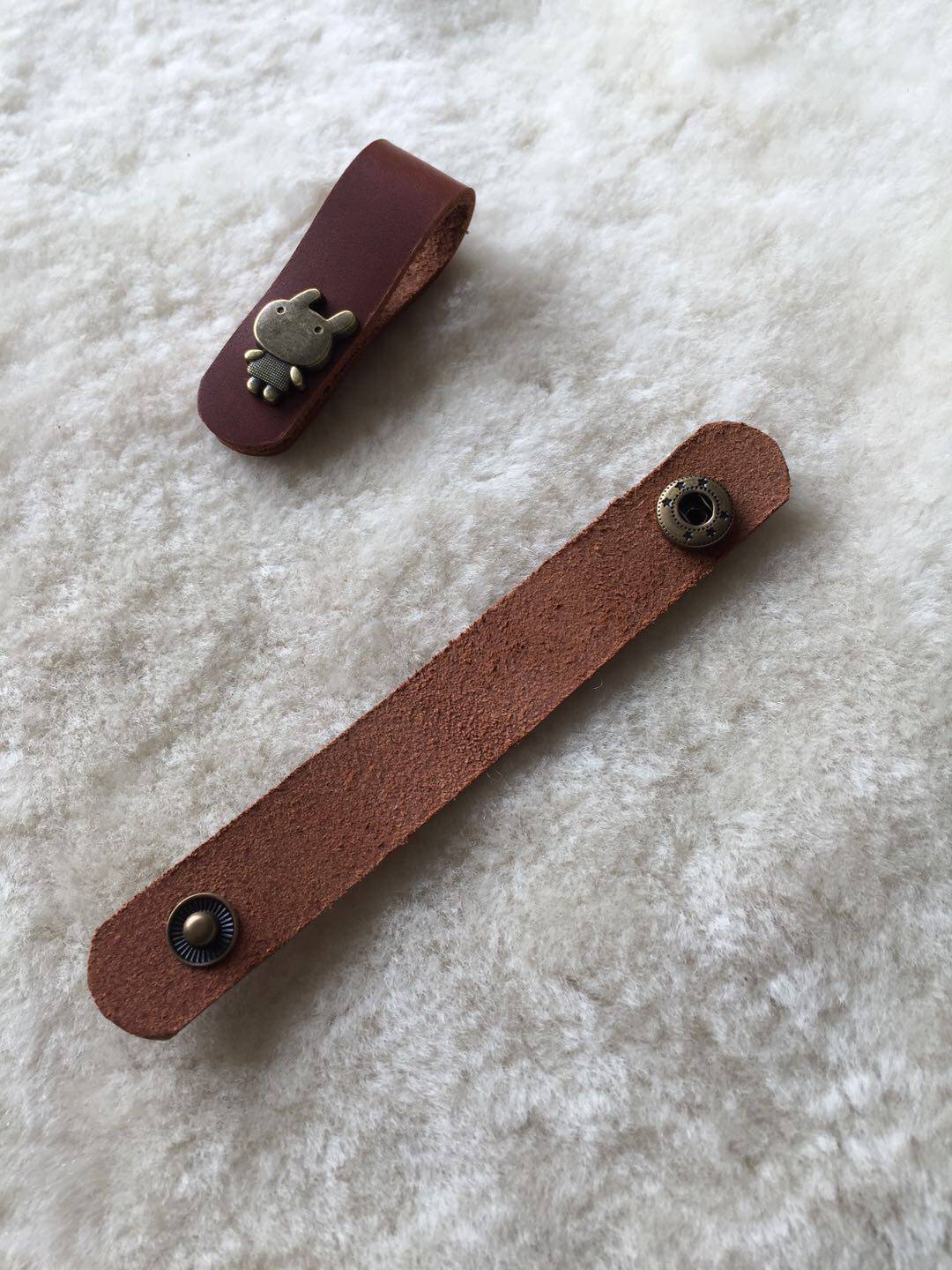 Handcrafted Brief Buffalo Leather Headphone Wire Winder Leather Data Line Ear Machine Wire Bundle Leather Block Head Layer Bull Leather Leather