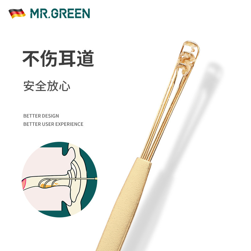 German MR.GREEN triple digging pottery ear spoon digging adult single soft ear spoon household ear scoop tiles